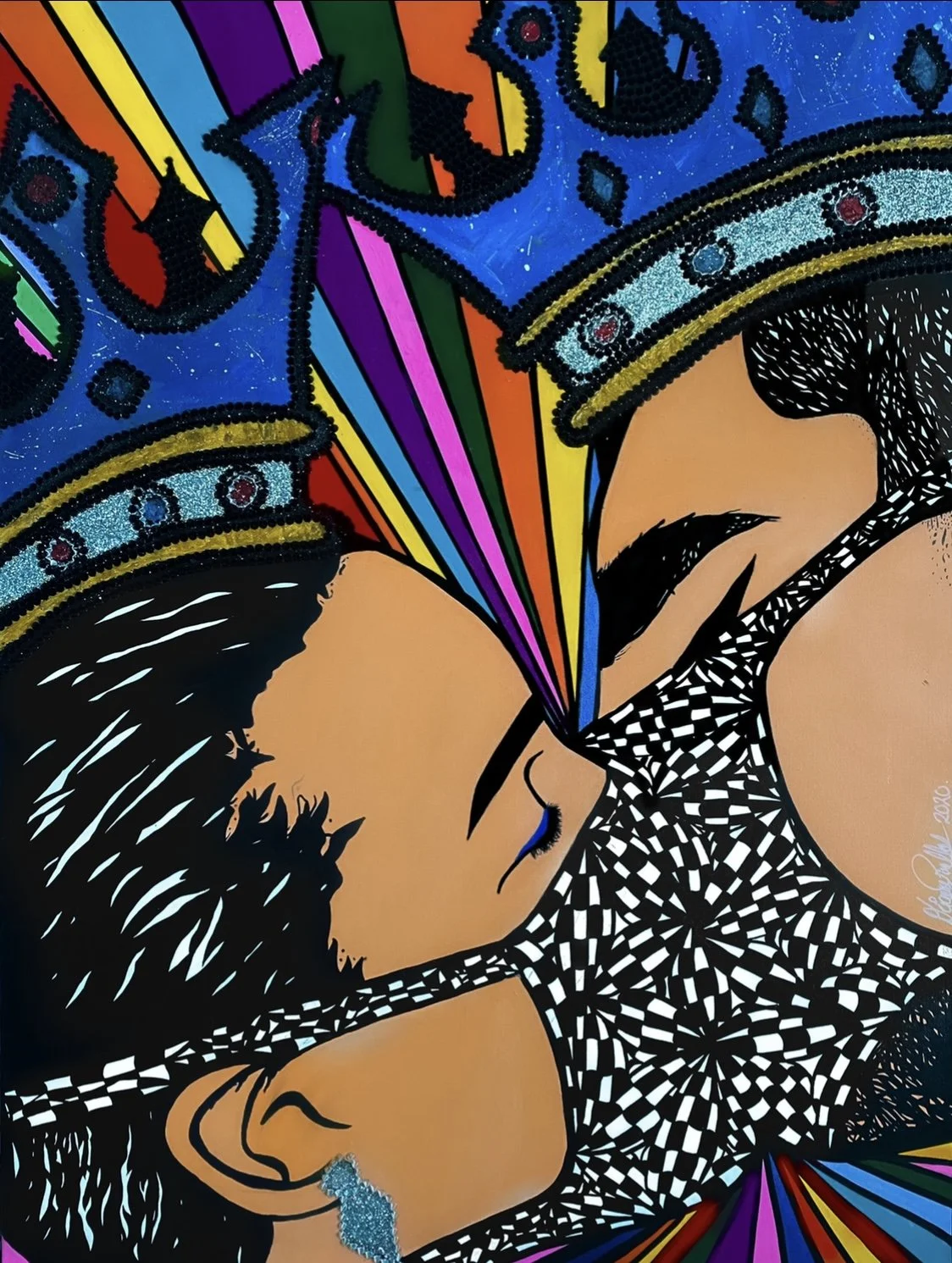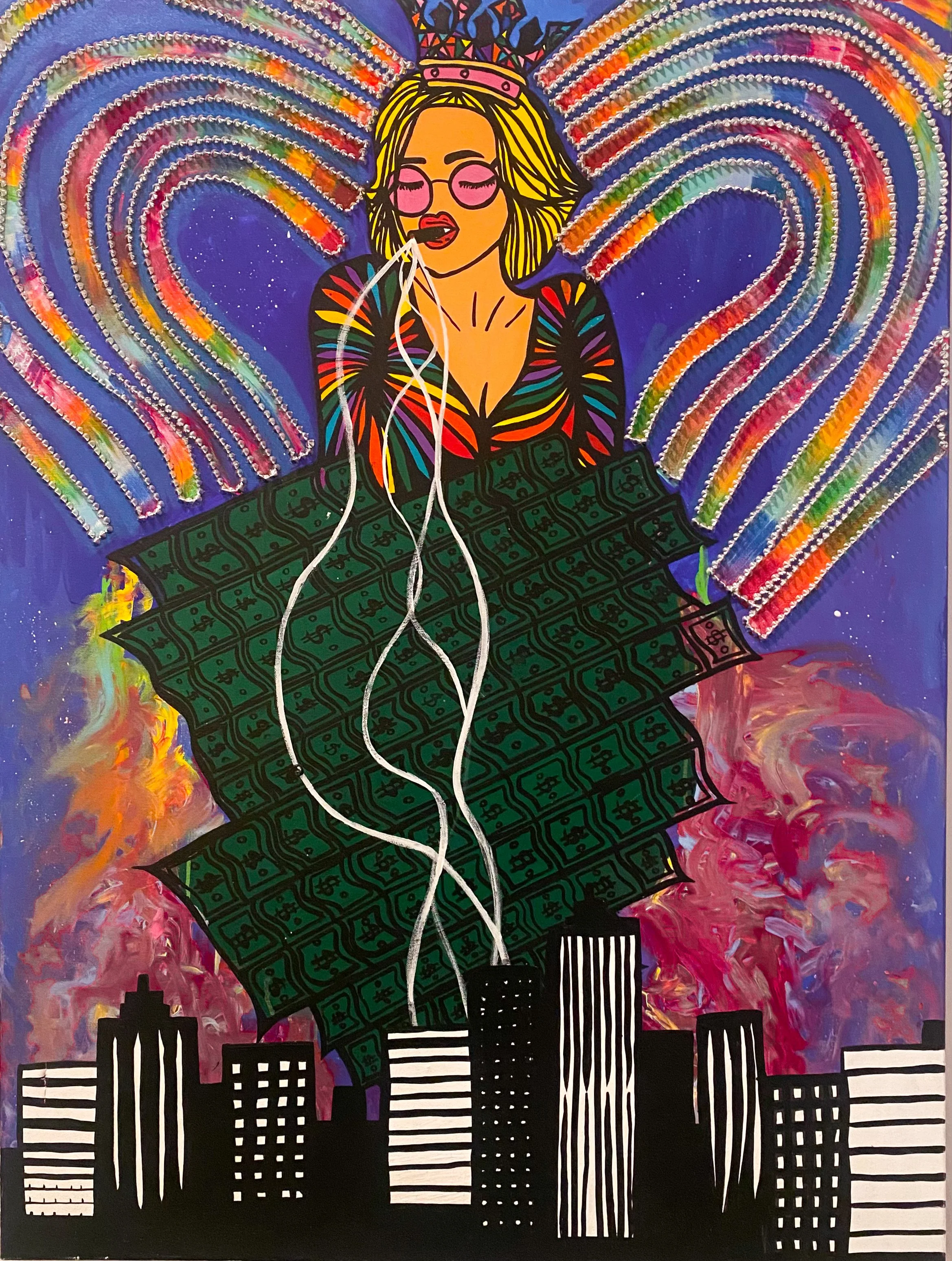 Acrylic on Canvas, Mixed Media (Spikes, swavorsky crystals, Home Made Glittler Paste)