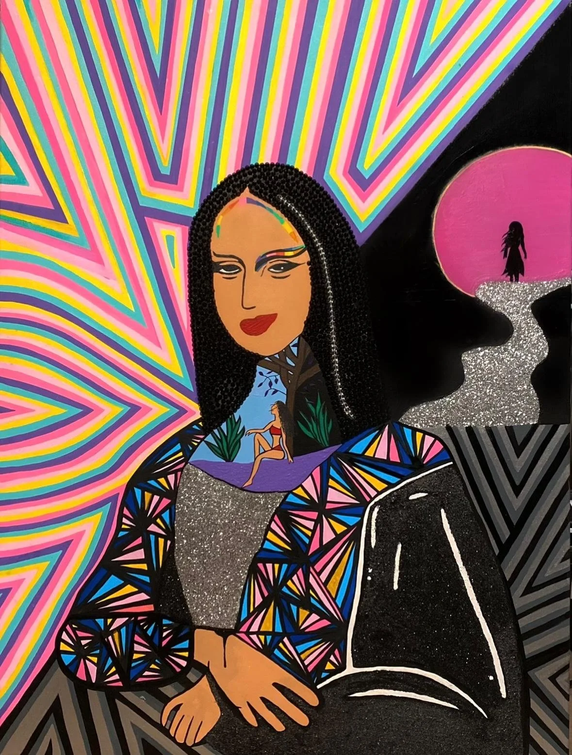 La Música, Mi Musa is a self-portrait that captures the profound connection between music and my identity as an artist. Music has not only shaped the way I see the world but has also become the language through which I express my soul. Every brushstroke in this piece carries the rhythm, emotion, and energy that music has gifted me, serving as both a muse and a bridge between my inner world and the canvas. This deep bond extends beyond painting into my live performance, La Música, Mi Musa, where I bring this fusion of sound and art to life, transforming emotions into a shared experience.